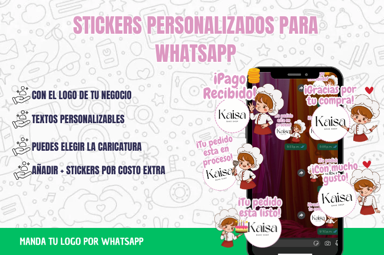 Cada pack de 5 stickers está diseñado especialmente para tu emprendimiento, reflejando la esencia de tu marca, ya sea que tengas una tienda de ropa, una pastelería, o seas un profesional independiente. ¡Haz que tus conversaciones sean tan especiales como tus productos!
